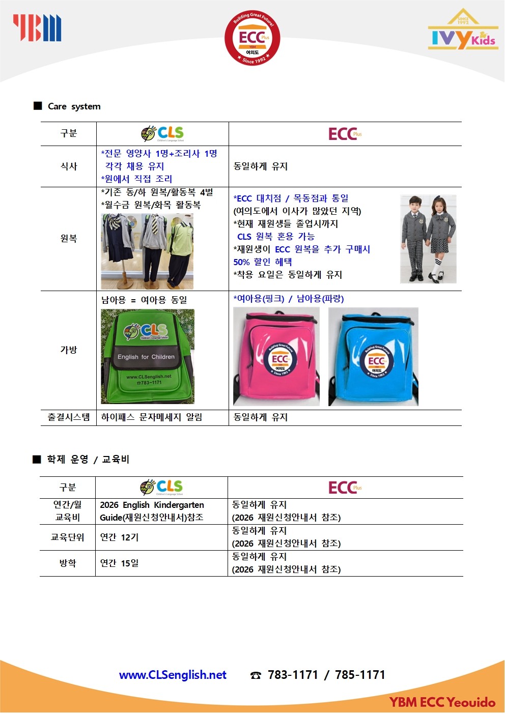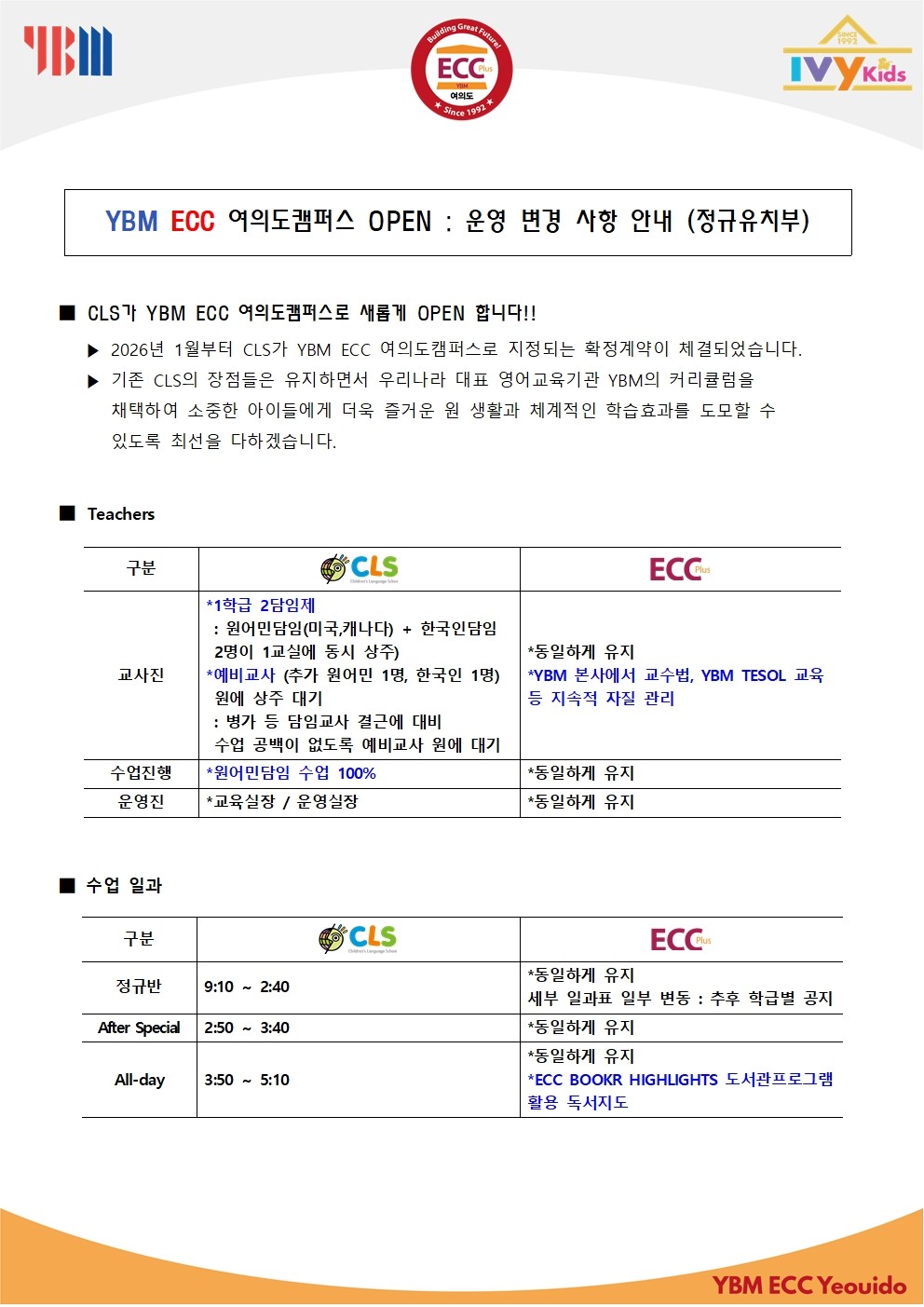 ✨YBM ECC 여의도캠퍼스 정규유치부 운영변경사항