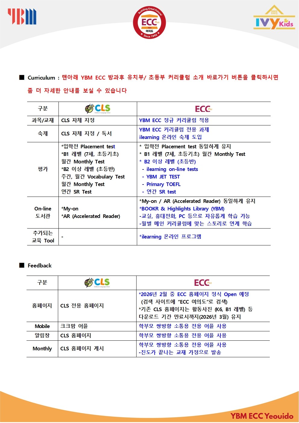 🎀YBM ECC 방과후 초등부 커리큘럼 소개